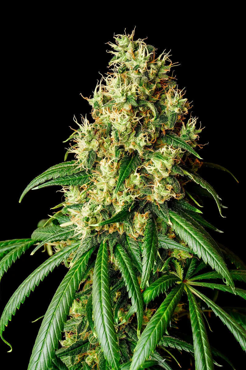 Esta variedad reacciona a los cambios de luz: al pasar a 12 horas de oscuridad, la floración se alarga durante 9 semanas. En interior puede alcanzar 200 cm, aunque se controla bien con poda apical o ScrOG. Puedes esperar producciones de 500 g/m². En exterior, las plantas pueden llegar a 150–200 cm y ofrecer hasta 700 g por planta.